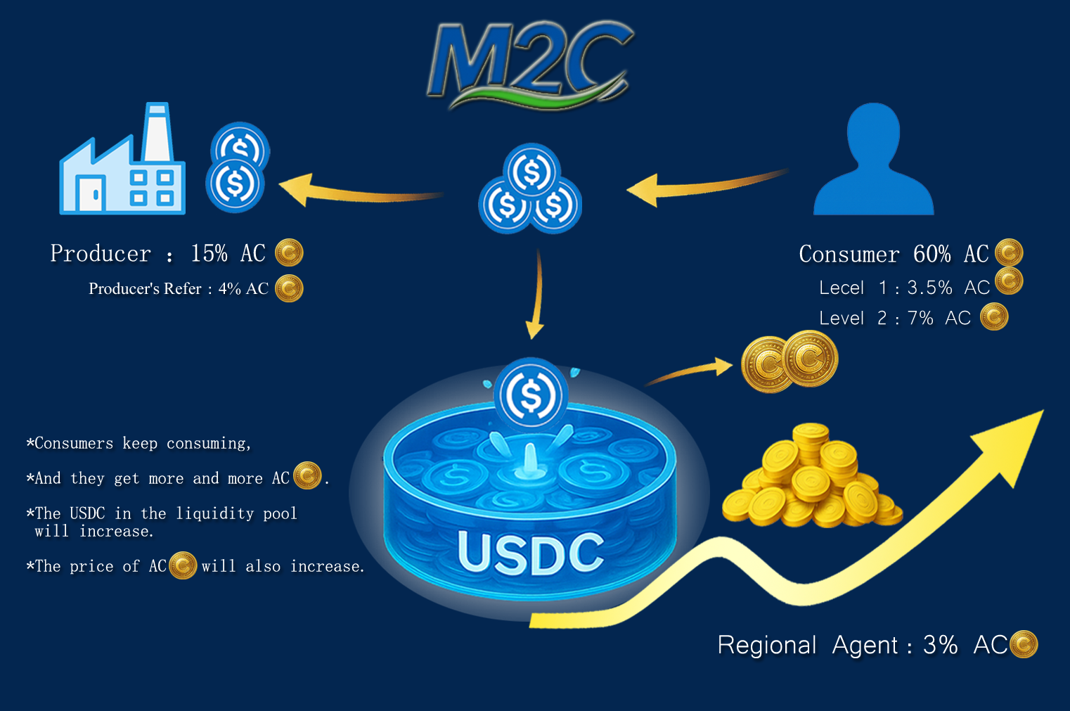 The M2C System is an innovative “payment + reward” tool built on blockchain technology, designed to redefine global commerce and consumer behavior.
